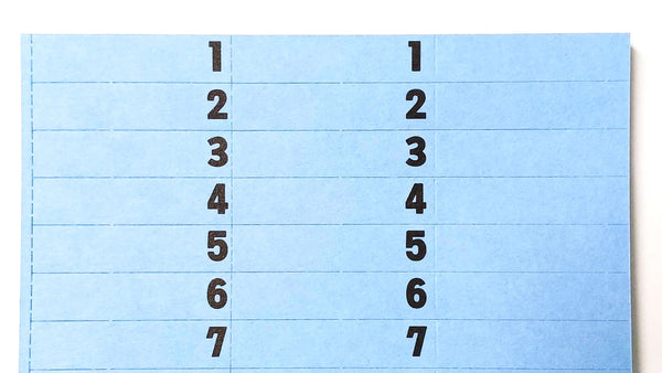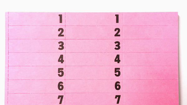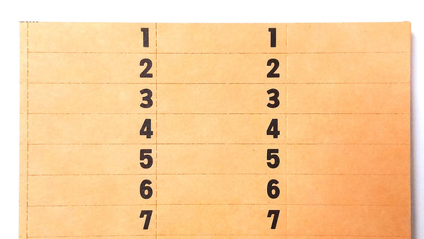 控付で1000番繰り返しの番号が入ったタックです。控は洗う前に切り取りやすいよう、切りやすいミシン目になっています。