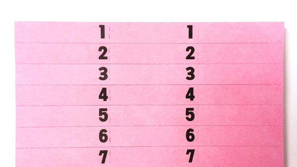 控付で1000番繰り返しの番号が入ったタックです。控を付けたまま洗えるよう、切れにくいミシン目になっています。